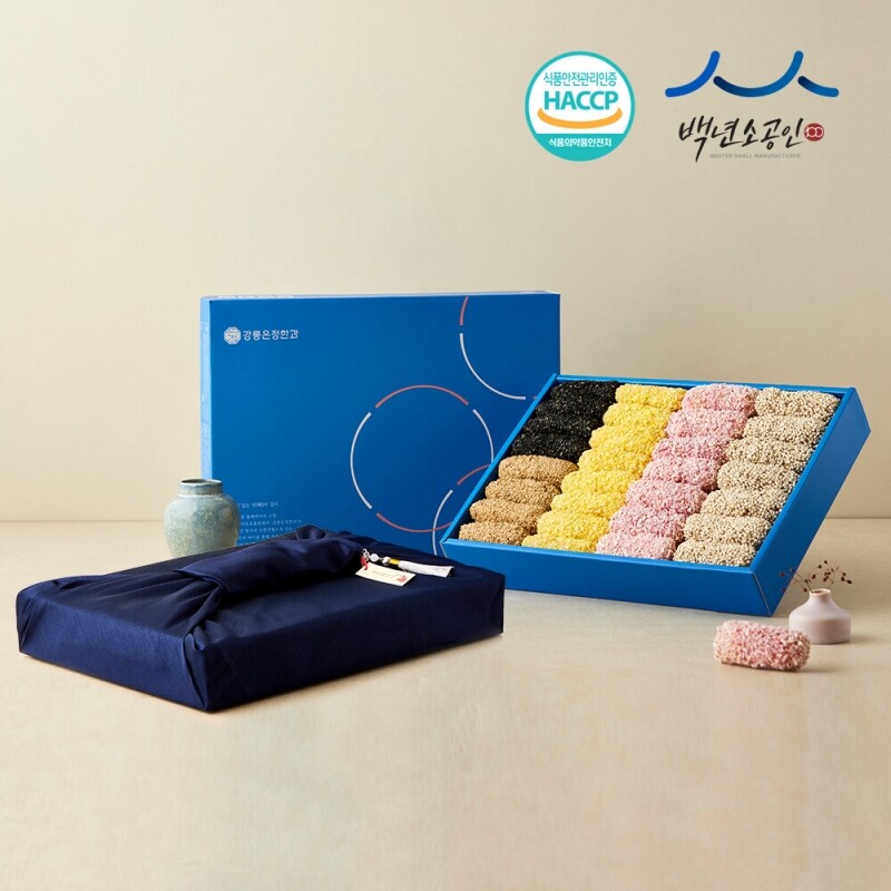 • 강릉은정한과 강정화 2단 선물세트+보자기 포장 (수제 유과 전통 한과 답례품 명절 설날 추석선물) 상품번호 : 100035